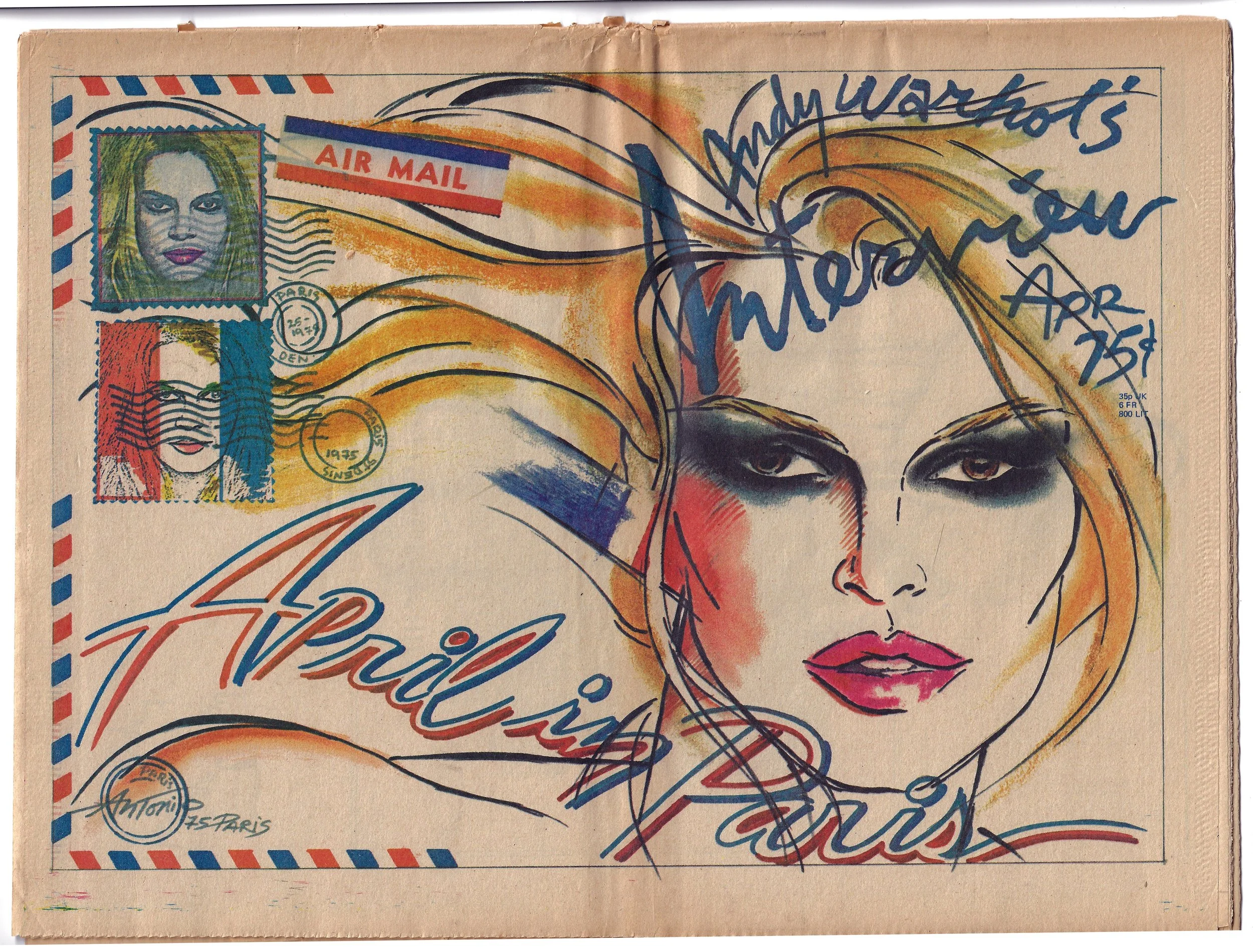Interview Magazine, April 1974. Cover illustration by Antonio and Juan.